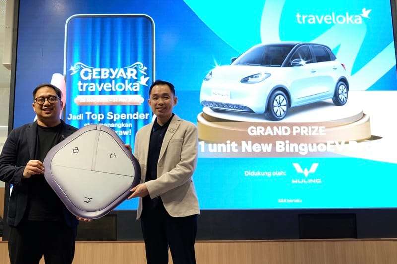 Program ini berlangsung dari 25 November 2025 hingga 31 Maret 2026, terbuka untuk seluruh pengguna Traveloka. Semakin sering pengguna bertransaksi, semakin besar peluang memenangkan grand prize Wuling New BinguoEV Pro.